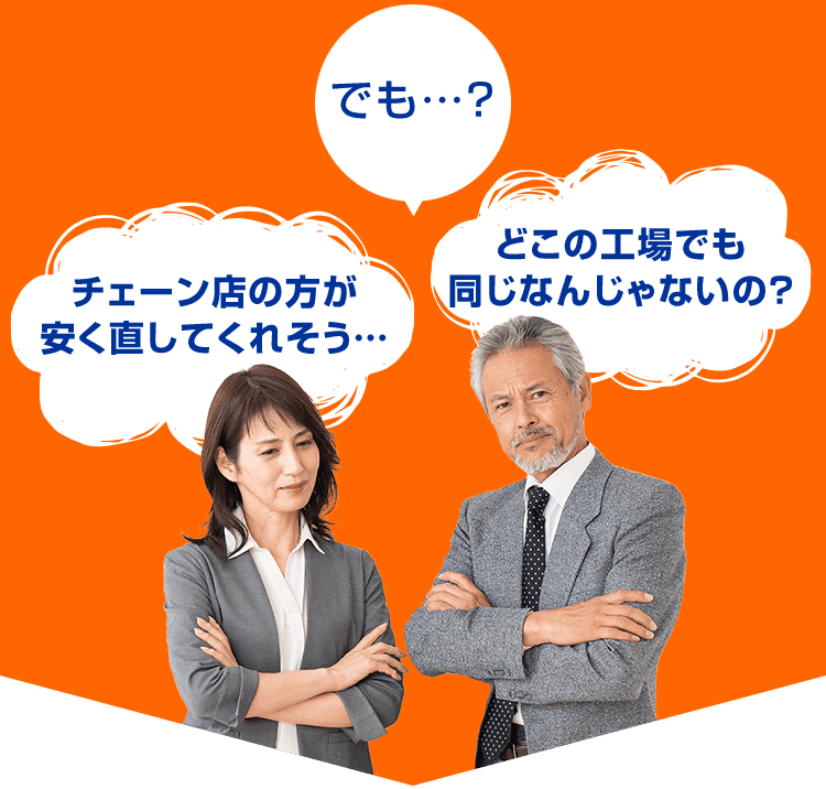 国家整備士によるご対応はもちろん、お客様のお車に最適な修理方法のご案内・販売もさせていただいています。